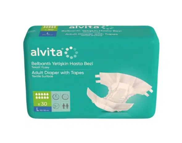 Alvita Tekstil Yüzeyli Belbantlı Hasta Bezi Large 30`lu